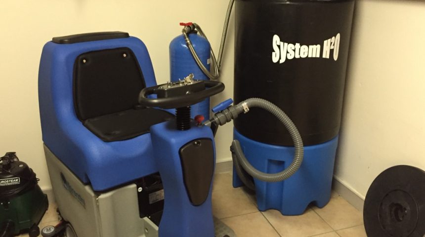 - L’ensemble des surfaces d’un site est nettoyé en eau pure : les grands espaces avec une autolaveuse, les circulations en balayage humide et le mobilier avec un vaporisateur.
